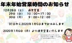 こんにちは! 今日はいい天気ですね! 今日は年末年始の営業時間のお知らせです。 2019年12月28
