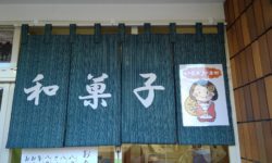 少しでもお店らしくなるようにと、のれんをさげてみましたがどうでしょう? あまり近くでじ
