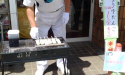 猛暑の中、醤油だんごを焼いてま~す!