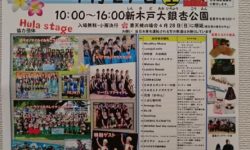 フラダンスやハワイアン生バンド演奏のステージのほか、富里のふるさと産品特産品ブース、ハワイアン雑貨の